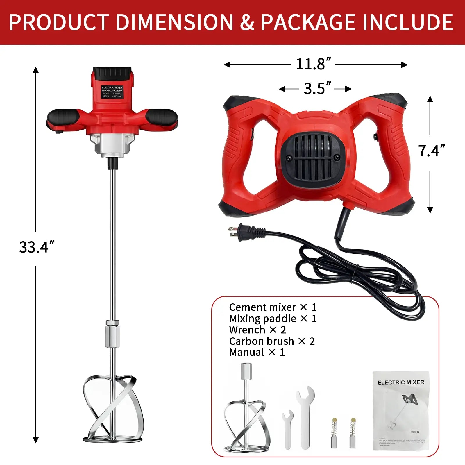 【What you get】1 x Handheld Electric Concrete Mixer, 1 x Mortar Mixer Shaft, 1 x Helical Blade, 2 x carbon brush, 1 x wrench, 1 x English Instruction Manual. Suitable for mixing oil paint, cement, fodder, mud, printing ink, thin-set mortar, plaster, cementitious adhesives and more. Please let me know if you have any questions about quality problems, and we are willing to help you solve them within 24 hours.