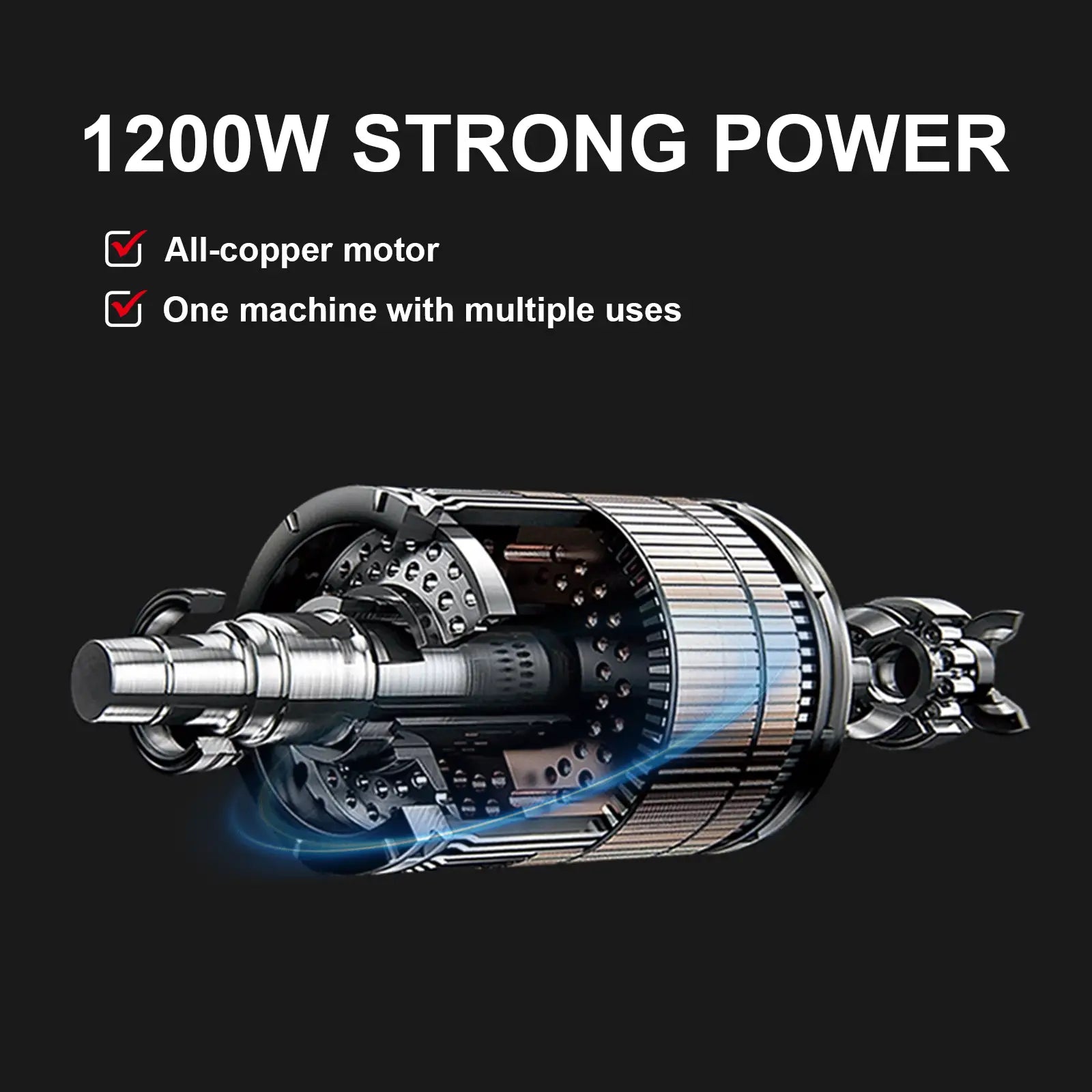 【Easy Operation 】Dual ergonomic handle and Operation Locking Switch reduce finger fatigue while mixing; All-copper carbon brush holder for easy and quick maintenance.