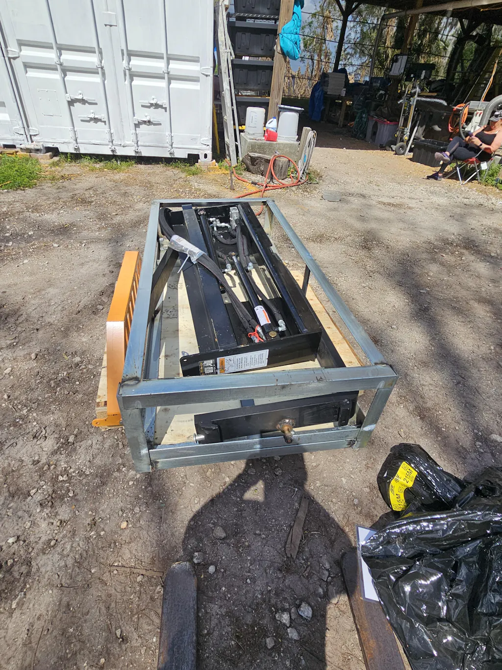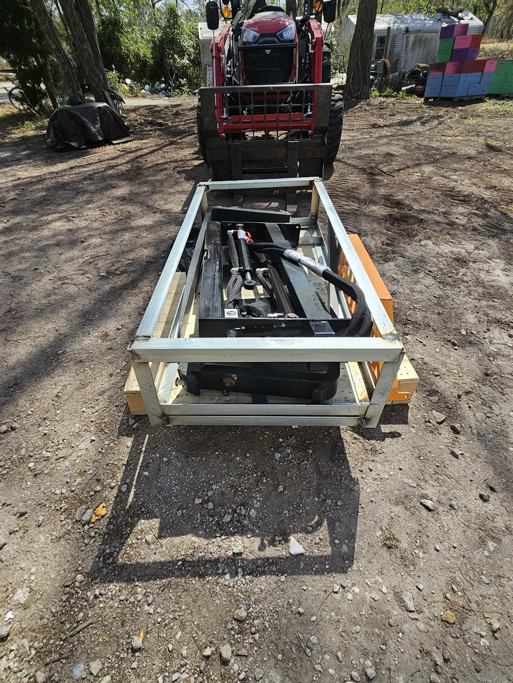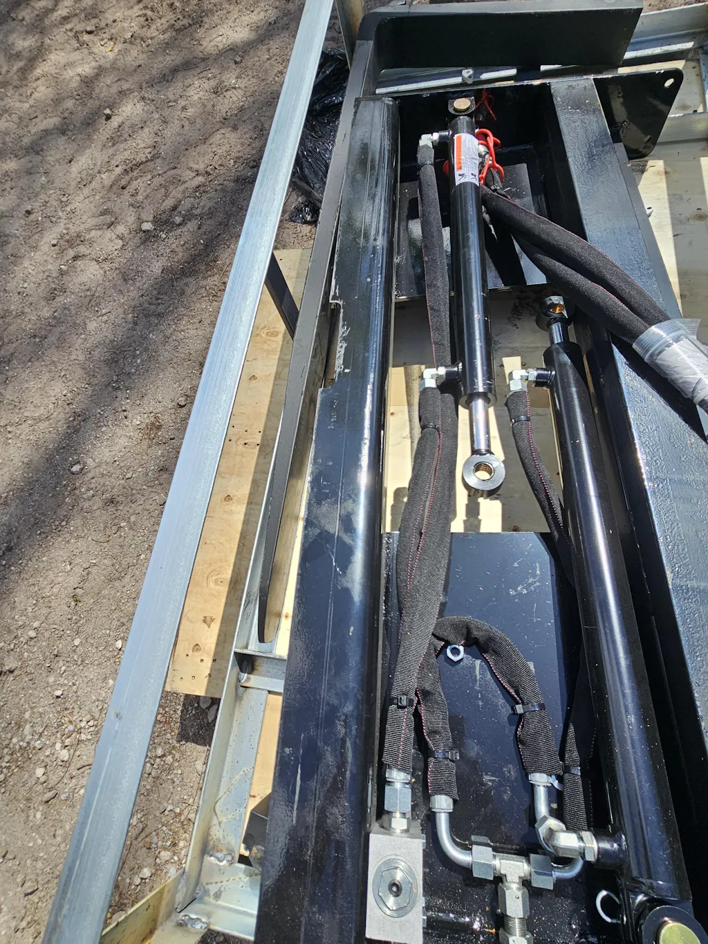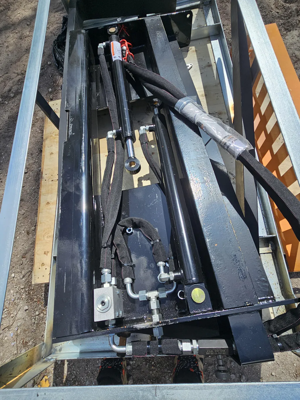 The Skid Steer Pallet Forks Hydraulic Adjustable are 58″ long Class II are 1 1/2 inches thick, 4 inches wide, completely heat treated. Our forks are completely adjustable and come with side steps to make it easy for you to climb in and out of you machine. The frame is constructed from 3” channel and 2” x 3” angle that is 3/8” thick. The forks are rated at 4000 lbs. These skid steer pallet forks are designed for Smaller loaders that don’t need the extra capacity of our normal skid steer loader.These forks permit the operator to hydraulically infinitely variably adjust the width of the tines without having to exit the operators cab.