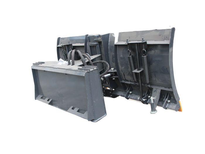 The Skid Steer V Snow Plow Blades will increase the productivity of your day. Whether you’re plowing through snow, or moving earth (such as dirt, gravel or sand) our V-Blade design will make your job at hand less time consuming. The V-Blade allows you to have the same angles as our other dozer blades and more. V-Blades come with trip springs, skid shoes, replaceable cutting edges and a lock-out pin for dirt and gravel work.